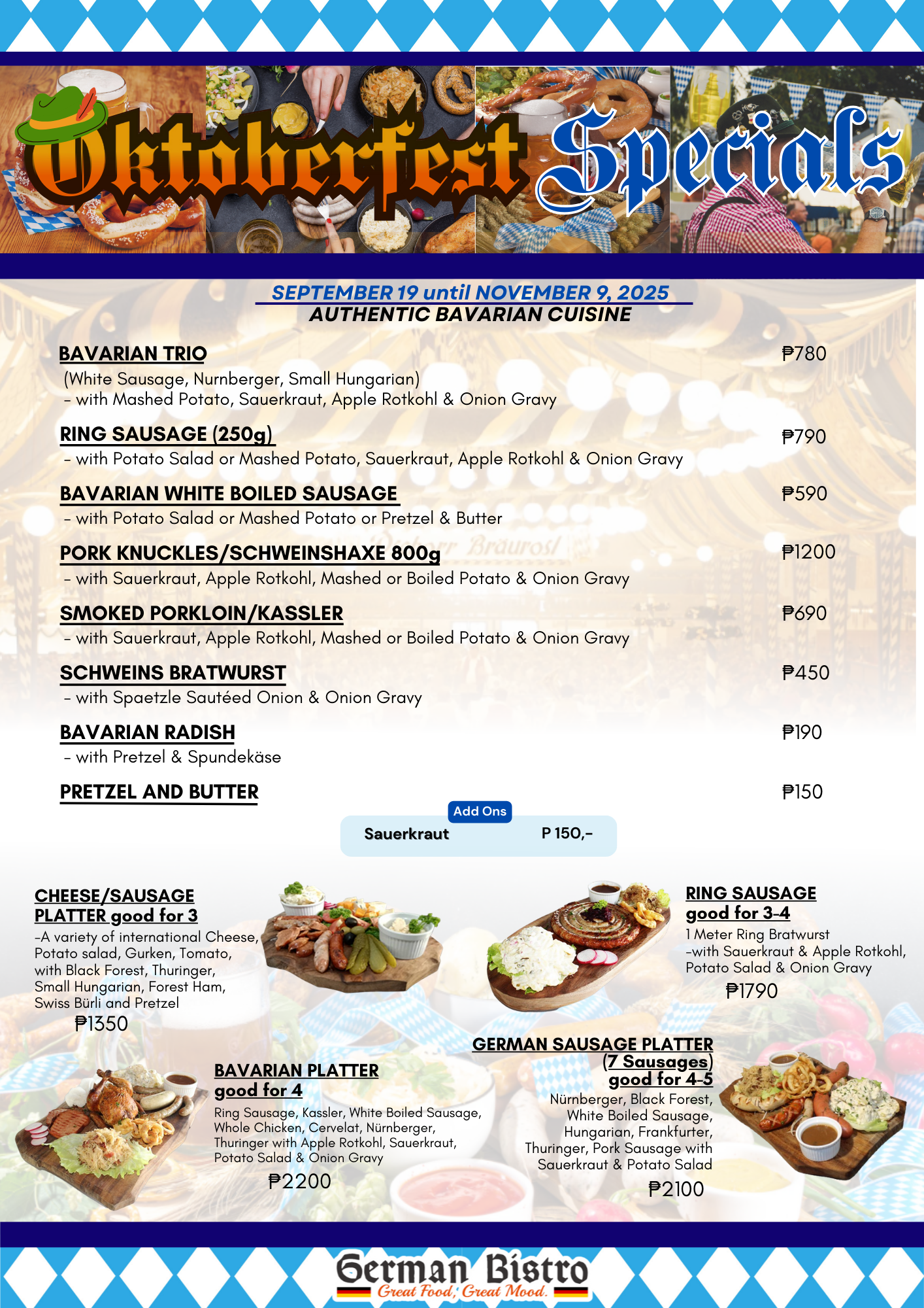 Taste the rich flavors of Bavaria with our specially curated Oktoberfest menu.